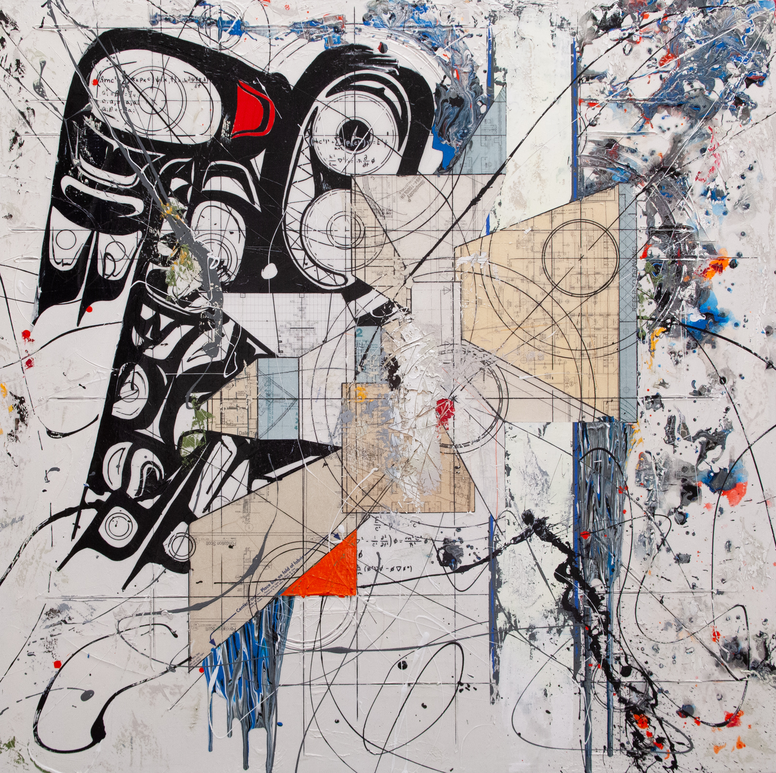 Space and architecture are central concepts of my approach. Space presents itself abstractly through a detachment of the plans, an overlap of delineated areas, and assemblies of multipoint perspectives which dig into the surface of the painting to give it a sense of depth. An objectively two dimensional space, that becomes three-dimensional rather subjectively through our interpretation of the codes that are presented.